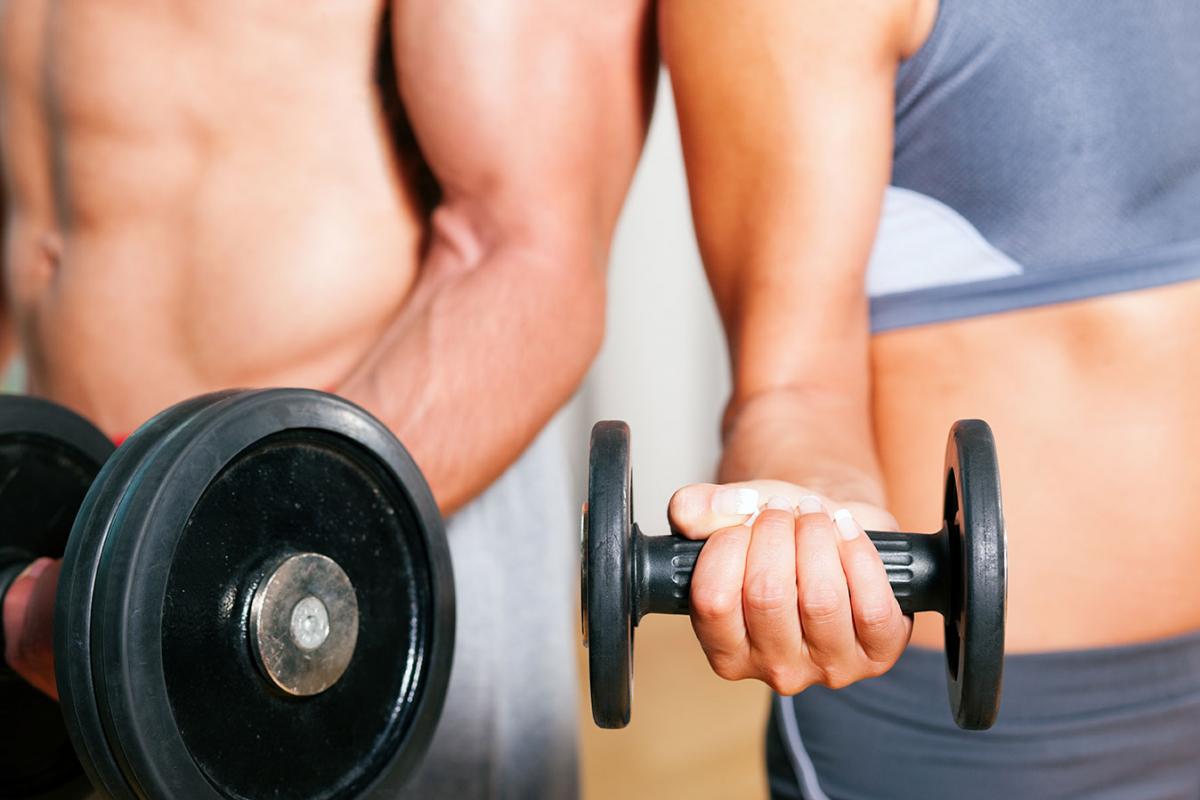 Esercizi con manubri, bilancieri, macchine isotoniche e cardio-fitness;